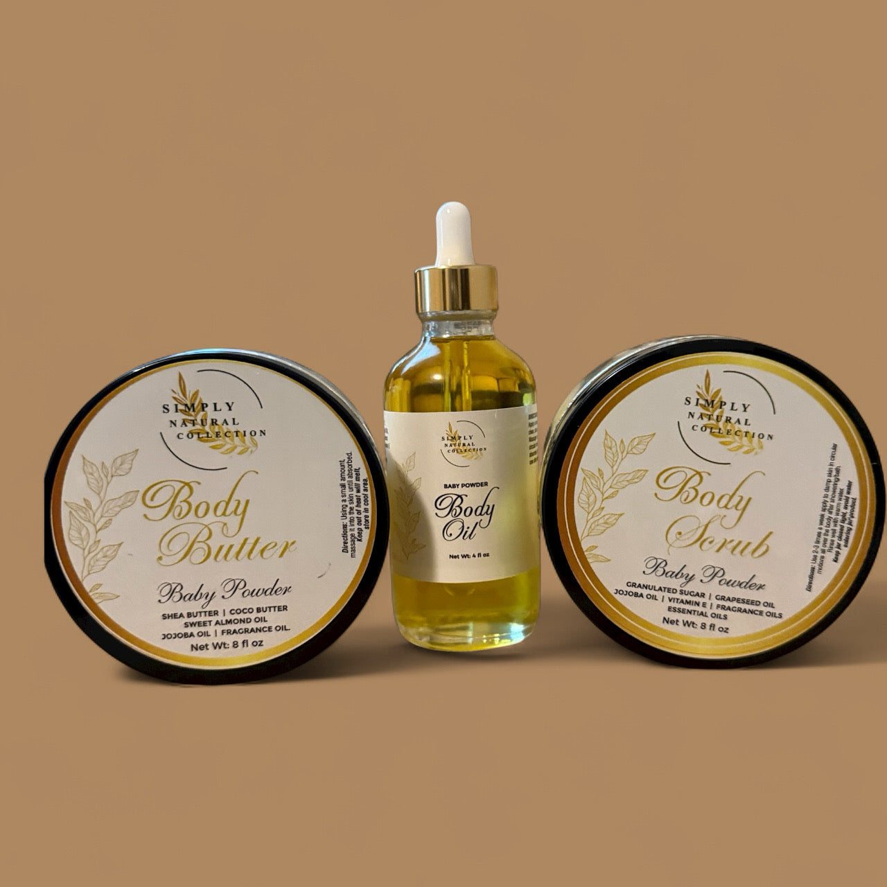 Wrap your skin in the soft, comforting scent of baby powder with this luxurious 3-piece set. Featuring our whipped Body Butter, gentle Body Scrub, and hydrating Body Oil, this bundle is perfect for keeping your skin smooth, nourished, and delicately scented all day.
